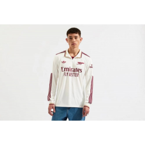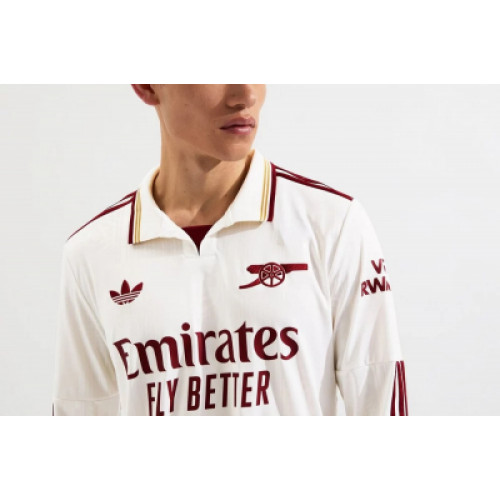 Футболка третья резервная команды Арсенал на сезон 25/26. Вышитые логотипы, стильный и немного олдскульный дизайн эмблем. Цвет бежевый."Совершенно новая, улучшенная футболка высокого качества, изготовленная из 100% полиэстера, оснащенная передовой технологией отвода влаги и пота, эффективно испаряет влагу с поверхности тела, обеспечивая длительный комфорт и сухость.(AAA+/1:1) Идеально подходящая для различных случаев, таких как тренировки и соревнования, она отлично впитывает пот и воздухопроницаема, обеспечивая исключительные ощущения от ношения.