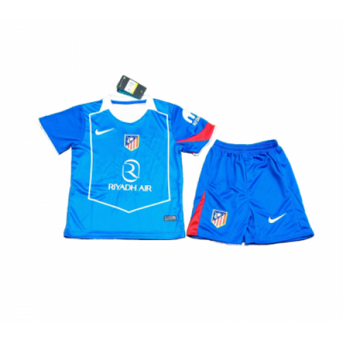 Детская резервная (третья) форма «Атлетико Мадрид» сезона 2025/2026 — это самый яркий и футуристичный комплект в коллекции, созданный специально для юных болельщиков. Дизайн и эстетика Цвет: Основной оттенок — светло-синий или лазурный. Это свежий взгляд на традиционные цвета клуба, ориентированный на молодежную аудиторию.