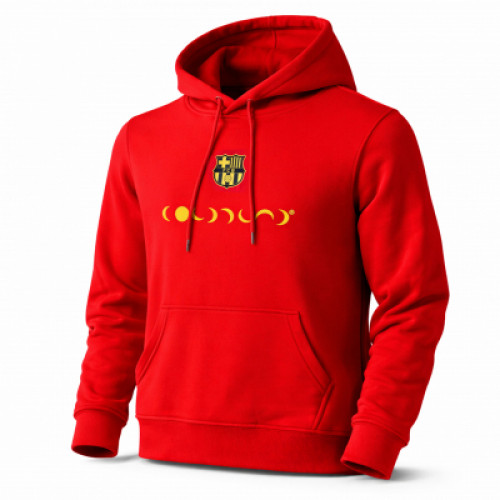 Худи в стиле FC Barcelona — яркий акцент для тех, кто ценит футбол вне сезона. Насыщенный красный цвет, фирменный герб на груди и минималистичный графический элемент делают модель узнаваемой и при этом универсальной. Плотный материал держит форму, удобный капюшон и карман-кенгуру добавляют практичности для повседневной носки. Подойдёт как для стадиона, так и для города — легко сочетается с джинсами, спортивными брюками или шортами.