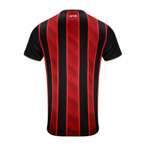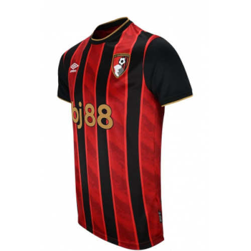 Борнмут футболка домашняя 2025/26 Футболка выполнена в традиционных красно-чёрных вертикальных полосах с тонкими золотыми акцентами на манжетах и воротнике. Узор на красных полосах добавляет динамики и современного стиля. На груди расположен клубный герб «Борнмут», эмблема производителя Umbro и логотип спонсора. Модель изготовлена из лёгкой и дышащей спортивной ткани, которая обеспечивает комфорт и свободу движений. Эргономичный крой идеально подходит как для игры, так и для повседневной носки. Эта футболка подчеркивает классический стиль «Борнмута» и станет отличным выбором для болельщиков, поддерживающих клуб в сезоне 2025/26.