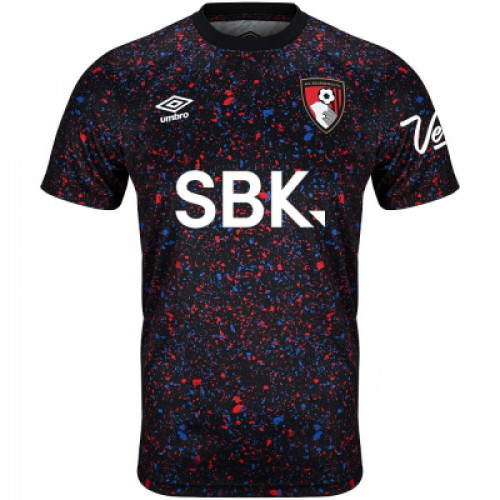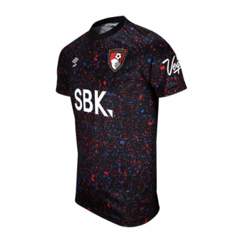 Борнмут футболка предматчевая 2025/26 Футболка выполнена в оригинальном дизайне с чёрной основой и эффектным узором из красных и синих акцентов, создающим яркий и энергичный образ. На груди размещён клубный герб «Борнмут», логотип Umbro и спонсорская эмблема. Модель изготовлена из лёгкой и дышащей спортивной ткани, которая быстро отводит влагу и обеспечивает максимальный комфорт во время разминки и подготовки к матчу. Свободный крой позволяет сохранять свободу движений, а стильный дизайн делает футболку отличным вариантом и для повседневной носки. Идеальный выбор для болельщиков, которые хотят подчеркнуть поддержку «Борнмута» и разделить атмосферу предматчевых моментов сезона 2025/26.