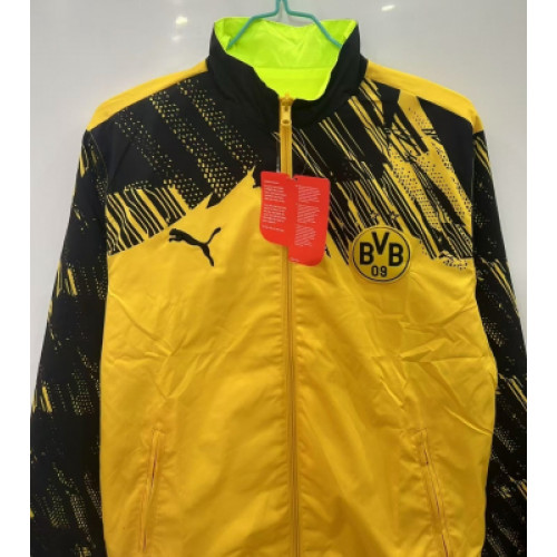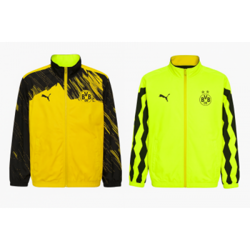 Удобная и стильная куртка для болельщиков «Боруссии», выполненная в двух вариантах дизайна. С одной стороны — классический жёлто-чёрный стиль с динамичным графичным узором по плечам и рукавам, с другой — яркий неон с контрастными чёрными элементами. Оба варианта украшены клубным гербом BVB 09 и логотипом Puma. Модель выполнена из лёгкого и прочного материала, защищающего от ветра и обеспечивающего комфорт в повседневной носке. Застёжка на молнию и боковые карманы делают куртку практичной и удобной. Двухсторонний дизайн позволяет менять стиль под настроение и ситуацию — от классики до яркого современного образа. Отличный выбор для фанатов, которые хотят подчеркнуть поддержку «Боруссии» в любой ситуации.