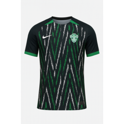 Гостевая форма «Эльче» сезона 2025/26 от Nike представляет смелое переосмысление клубных цветов — глубокий чёрный фон с динамичным зигзагообразным узором в зелёно-белой гамме. Этот графичный мотив символизирует энергию и движение, подчёркивая амбициозный характер команды. Эмблема клуба и логотип Nike выполнены в минималистичном стиле, а контрастные зелёные манжеты и вставки на плечах придают комплекту сбалансированный акцент. Материал с технологией Dri-FIT ADV обеспечивает вентиляцию и комфорт на поле. Яркий и дерзкий дизайн подчёркивает современную идентичность «Эльче», сохраняя уважение к его классическим корням.