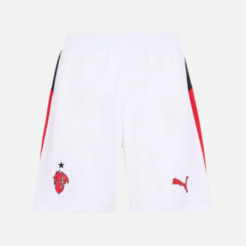 Описание гостевых шорт «Милана» (2025/26) Цвет: Традиционный для выездной формы «Милана» — белый. Дизайн: Минималистичный стиль. Вдоль боковых швов или по нижнему краю могут проходить тонкие контрастные вставки в классических красно-черных цветах. Справа — вышитая эмблема клуба «Милан». Материал: 100% переработанный полиэстер. Ткань эффективно отводит пот и быстро сохнет, сохраняя легкость даже при намокании. Посадка: Эластичный пояс с внутренним шнурком, стандартный свободный крой.