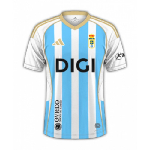 Резервная форма «Реал Овьедо» сезона 2025/26 от adidas сочетает белый и небесно-голубой цвета, вдохновлённые чистотой астурийского неба и морским побережьем региона. Вертикальные полосы придают образу элегантность, а золотые акценты на плечах и воротнике подчёркивают премиальный стиль клуба. На груди — логотип DIGI и эмблема «Реал Овьедо», а внизу — фирменная надпись Oviedo, Origen del Camino. Материал AEROREADY обеспечивает максимальный комфорт, лёгкость и вентиляцию — идеален как для игры, так и для повседневной носки.