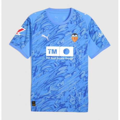 Вратарская форма «Валенсии» сезона 2025/26 от Puma выполнена в ярком голубом оттенке с динамичным абстрактным рисунком по всей поверхности. Дизайн символизирует энергию и движение, подчеркивая индивидуальность голкипера. Логотип клуба и спонсора TM Real Estate Group контрастно выделяются на фоне. Материал с технологией DryCELL эффективно отводит влагу и обеспечивает комфорт на протяжении всего матча. Лёгкий крой и эластичная ткань не ограничивают движений, помогая оставаться в игре до последнего свистка.